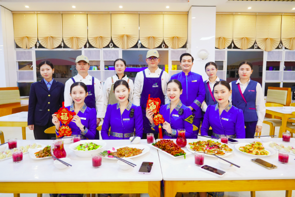 “吃鱼寓意‘年年有余’,吃饺子象征‘吉祥如意’。”年夜饭准时开始,餐桌上摆满了丰盛的美食。公寓不仅准备了香茅草烤鱼、傣味拌牛肉等东南亚地方菜,还制作了饺子等中国传统美食。工作人员热情介绍每道菜的寓意,老挝乘务员们也笑着分享:“我们新年会吃糯米糕,祈愿平安顺遂”,话语间,烟火气里盛满了跨文化交融的暖意。