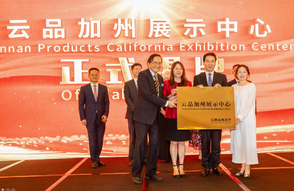 活动现场,“云品加州展示中心”揭牌仪式成为焦点。该中心由云南省常务副省长赵俊民与加州财长马世云共同揭幕,并正式授予美国云南总商会,未来将落地加州,成为云南特色产品展示与对接的常态化平台。此外,多项合作意向达成:云南永生花企业与洛杉矶电商平台计划在好莱坞共建“云花手作坊”,打造融合手作、文化与体验的新型电商场景;美国多家农产品进口商与云南企业签署协议,计划在加州连锁超市开设“云南精品角”,推动云品稳定进入美国市场。
