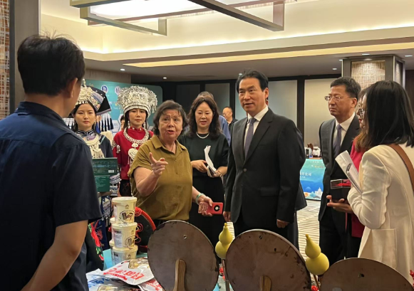 活动以“搭建中美商贸金桥,赋能云品全球出海”为主题,汇聚了50家云南优秀企业,集中展示了普洱茶、咖啡、永生花、民族工艺品、高原蔬果、天然香料、中草药和绿色食品等独具特色的“云品”。展区设计融合云南民族元素,为与会嘉宾带来沉浸式体验,充分展现了云南文化的魅力与产品的多样性。