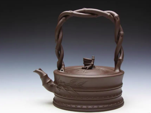 此壶取黄龙山底槽青泥为骨——这种深藏矿层底部的泥料,色泽沉郁如古砚,触手细润似凝脂,经1200℃高温烧制后,胎骨坚致而透气性佳,既承托了紫砂“泡茶不走味”的实用本真,又自带“养之愈润”的岁月质感,是宜兴紫砂泥料里的“贵胄”。