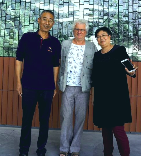 丁山青龙山地址公园大型璧挂《素石颂》(图中为联合国教科文组织陶瓷协会主席雅克.考夫曼)
