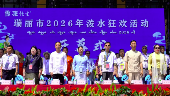 春潮涌动,圣水欢歌。4月11日,瑞丽市瑞丽江广场鼓乐喧天、热闹非凡,2026年瑞丽市泼水狂欢活动在这里开幕。