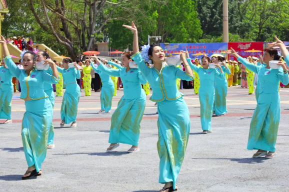 泼水狂欢现场上,各族群众与国际友人互相泼洒圣水,互道“水花放,傣家狂”的祝福语,气氛热烈祥和。泼水节不仅是民族文化的展示,更成为中缅胞波情谊的生动体现。
