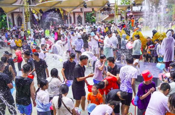 一城清水,一城欢歌。4月12日,2026年芒市泼水节在芒市广场盛大开幕,狂欢的气息从广场蔓延至大街小巷——伴着象脚鼓的节拍,人们尽情泼洒幸福、传递快乐、舞动团结、收获吉祥,整座城市化作一片欢乐的海洋。
