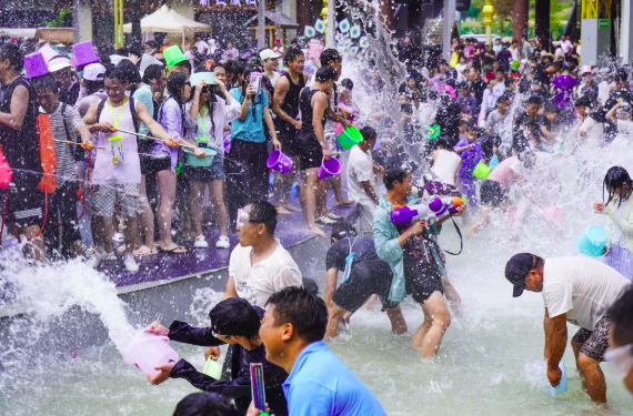 阳光正好,水花正欢,芒市的每条街道上欢声笑语、水花四溅,变成了欢乐的海洋,万千祝福汇聚的清流肆意泼洒。来自全国各地的游客与本地居民一起狂欢,每个人的脸上都洋溢着幸福的笑容。来自广西的游客李女士第一次参加泼水节,她兴奋地说:“我刚从广场出来,以为狂欢只在广场,没想到整条街都是人、都是水、都是笑声,感受到了芒市泼水节满满的热情。”