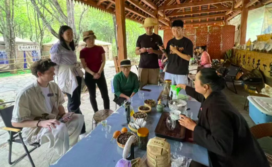 在景迈山,采访团见证了“林茶共生、人地和谐”的千年智慧。作为全球首个茶主题世界文化遗产,普洱景迈山古茶林文化景观保存着完整的古茶林和传统村落。采访团走进大平掌古茶林、蜂王树、翁基古寨和糯岗古寨,聆听帕岩冷驯化茶树的古老传说,体验布朗族酸茶、傣族竹筒茶制作技艺,领略传统民居的古朴韵味。“这里实在太美了,茶叶很好喝。”来自英国的旅游博主亚当赞叹。中老铁路的开通,让这座千年茶山迎来更多国内外游客,世界文化遗产的魅力正沿着钢铁丝路加速传播。