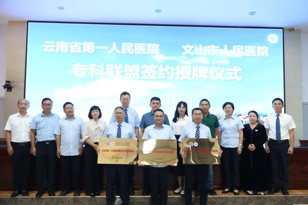 “郑粉双专家团队基层专家工作站”签约授牌暨“文山市医共体临床中毒救治中心”揭牌仪式、与云南省第一人民医院的三个专科联盟(胸外科、神经外科、耳鼻咽喉科)签约授牌仪式顺利举行。省级专家团队强调将通过专家下沉、技术帮扶、资源共享等方式,助力文山市人民医院提升学科建设水平。