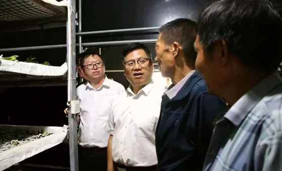 10月15日下午,陈真永在祥云县刘厂镇松梅村大棚养蚕基地调研蚕桑产业发展情况。