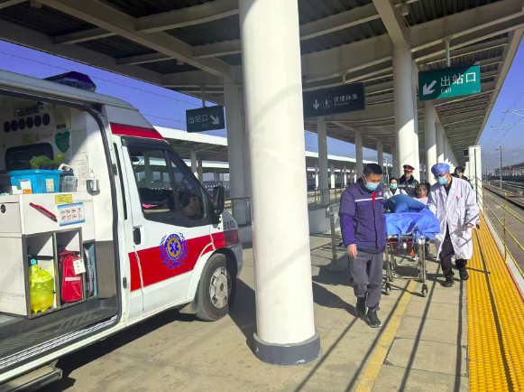 “各岗位注意,4号站台需要担架接应!”10时22分,随着对讲机里传来指令,早已等候在站台的田广领、彭江等工作人员与列车乘务组紧密配合,小心翼翼地将患病旅客转移至担架。不一会儿,救护车通过消防通道疾驰而至,医护人员迅速接管病人。