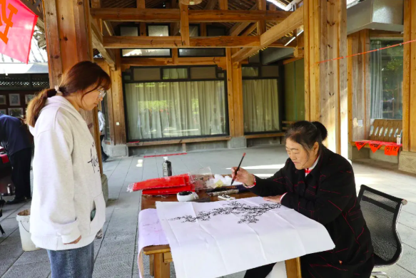 除了手写春联赠福字,现场还设置了国画创作、剪纸展示、健身气功表演等丰富环节,国画爱好者以墨绘春、勾勒美好,剪纸艺人指尖翻飞、剪出年味,吸引了众多游客和群众驻足观赏、积极参与,大家或围观喝彩,或亲手体验写春联、剪福字,现场欢声笑语不断,暖意十足。