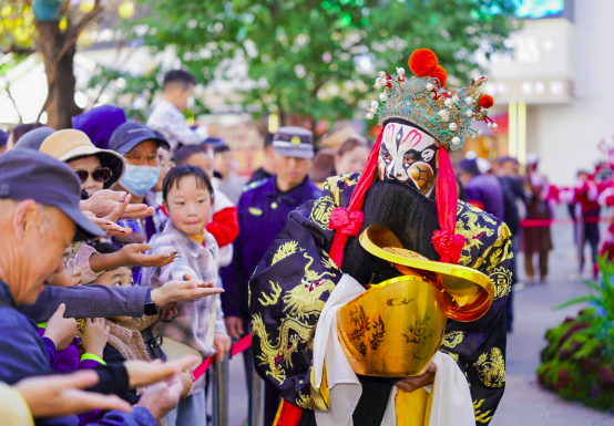 n发布会现场,大型艺术沉浸式立体花雕“观山・观水・观春城”成为吸睛焦点,该花雕以高山杜鹃、云南山茶等50余种乡土花卉植物为主材,通过主题鲜明、造型新颖的艺术表达,生动诠释昆明生态宜居、开放包容的城市气质,成为新春城市景观的点睛之笔。此外,现场还精心筹备了诸多特色互动环节,氛围感拉满:汉服古风少年团为游客赠送新鲜花卉,传递新春祝福;《昆明蓝》歌曲演唱唱响春城的澄澈与浪漫;《四丑闹春・戏变乾坤》财神互动表演及财神巡游轮番上演,为现场游客送上新年福气,让整场发布会既有文化底蕴,又充满节日的热闹气息。