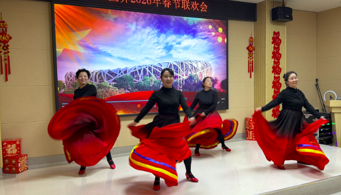 作为一心堂药业集团旗下专注老年健康的子公司,一心医养依托二级医院医疗支撑,构建起“机构—社区—居家”三级联动服务体系。本次活动将新春年俗与医养关怀深度融合:院内长者自编新疆舞展现银发活力,护理人员全程伴护随时响应健康需求,而柔力球队的来访则形成白发对白发的精神共鸣。