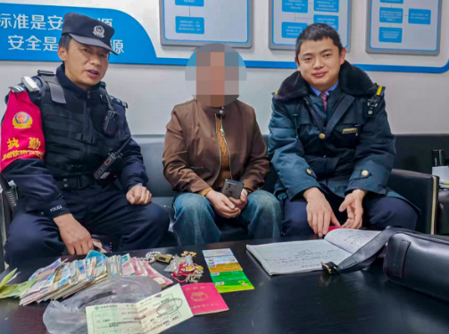 3月4日下午,中国铁路昆明局集团有限公司富源北站客运员罗满意在候车室巡视时,发现座椅上有一个旅客背包。经询问无人认领后,他第一时间联系铁路公安民警到场协同处置。经现场清点,包内物品有一张40万元的银行存单、三张银行卡、一张身份证、一本结婚证,以及7069元现金。富源北站随即启动失物招领程序,铁路公安民警通过包内证件多方核查,迅速锁定失主段女士;客运员黎旭安使用扩音喇叭在候车室四处寻找段女士,后经查询却发现段女士已检票乘车,前往昆明方向。