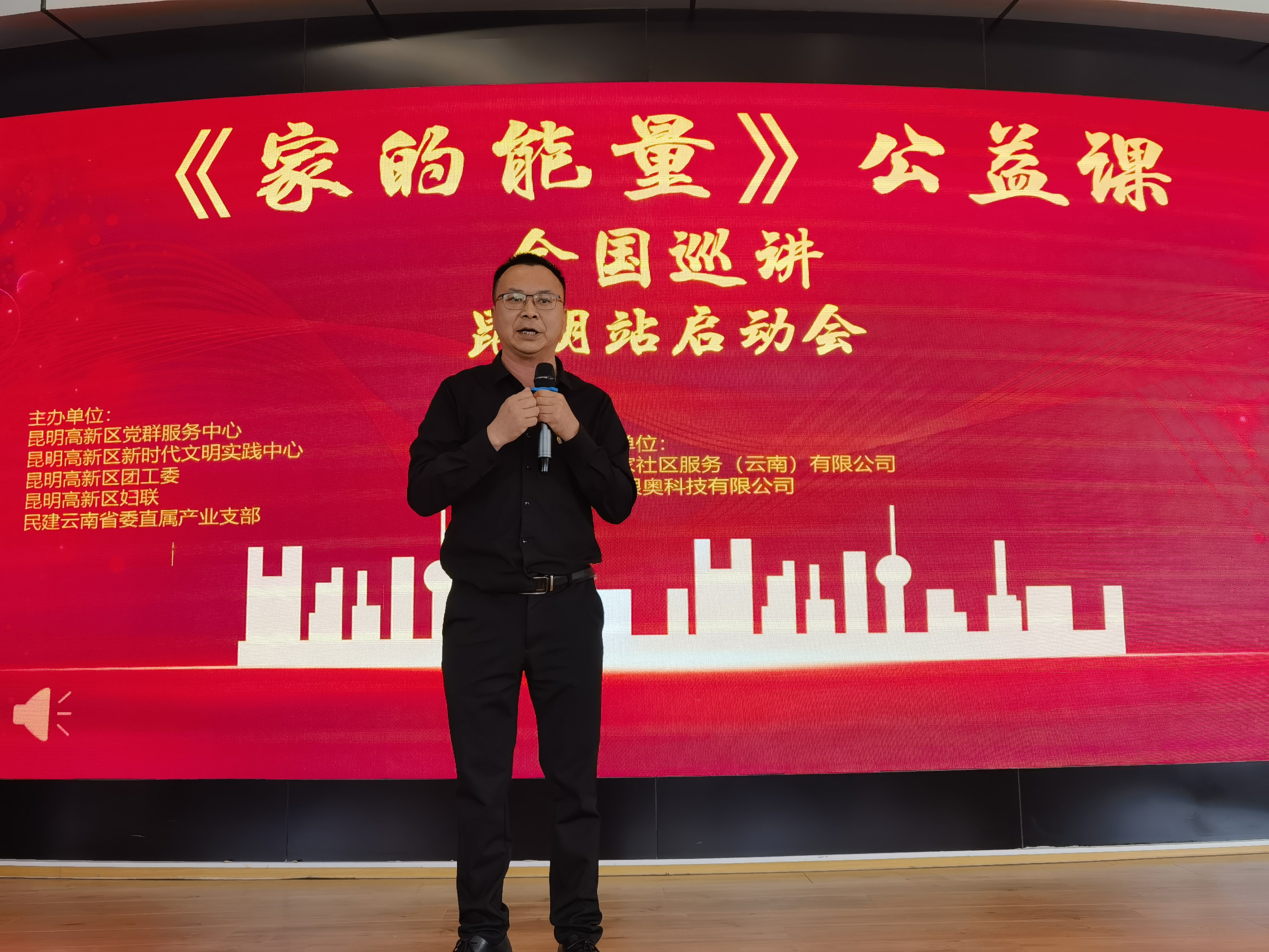 2026年4月8日,“家的能量”全国公益巡讲(昆明站)启动仪式在昆明高新区火炬大厦4楼404路演大厅圆满举行。本次活动由昆明高新区党群服务中心、新时代文明实践中心、团工委、妇联及民建云南省委直属产业支部联合主办,幸福家社区服务(云南)有限公司、云南银奥科技有限公司承办,高新区社区代表、媒体朋友、志愿者及社区居民齐聚现场,共同开启这场赋能家庭、温暖社区的公益之旅。