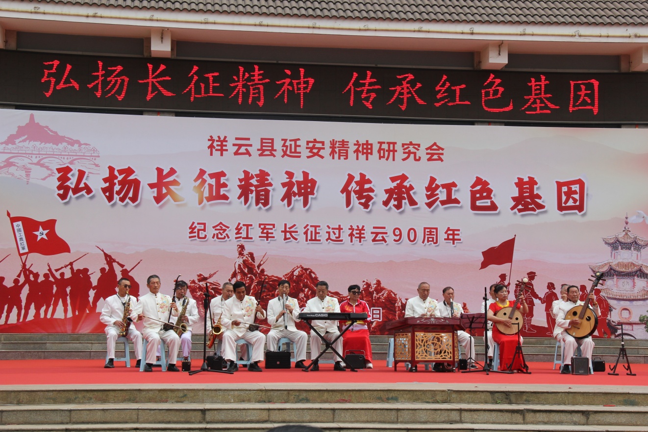 420日,在祥云县“弘扬长征精神,传承红色基因——纪念红军长征过祥云90周年”主题实践活动启动仪式上云南省祥云县延安精神研究会艺术团演出系列红色经典节目,纪念红军长征过祥云90周年演出在喜洋洋》《红梅赞的音乐合奏中拉开帷幕。