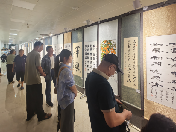 本次展览共计展出154件艺术作品,作品内容涵盖书法、美术、摄影、剪纸等类别。由市退役军人事务局选送的4件退役军人作品入选参展。