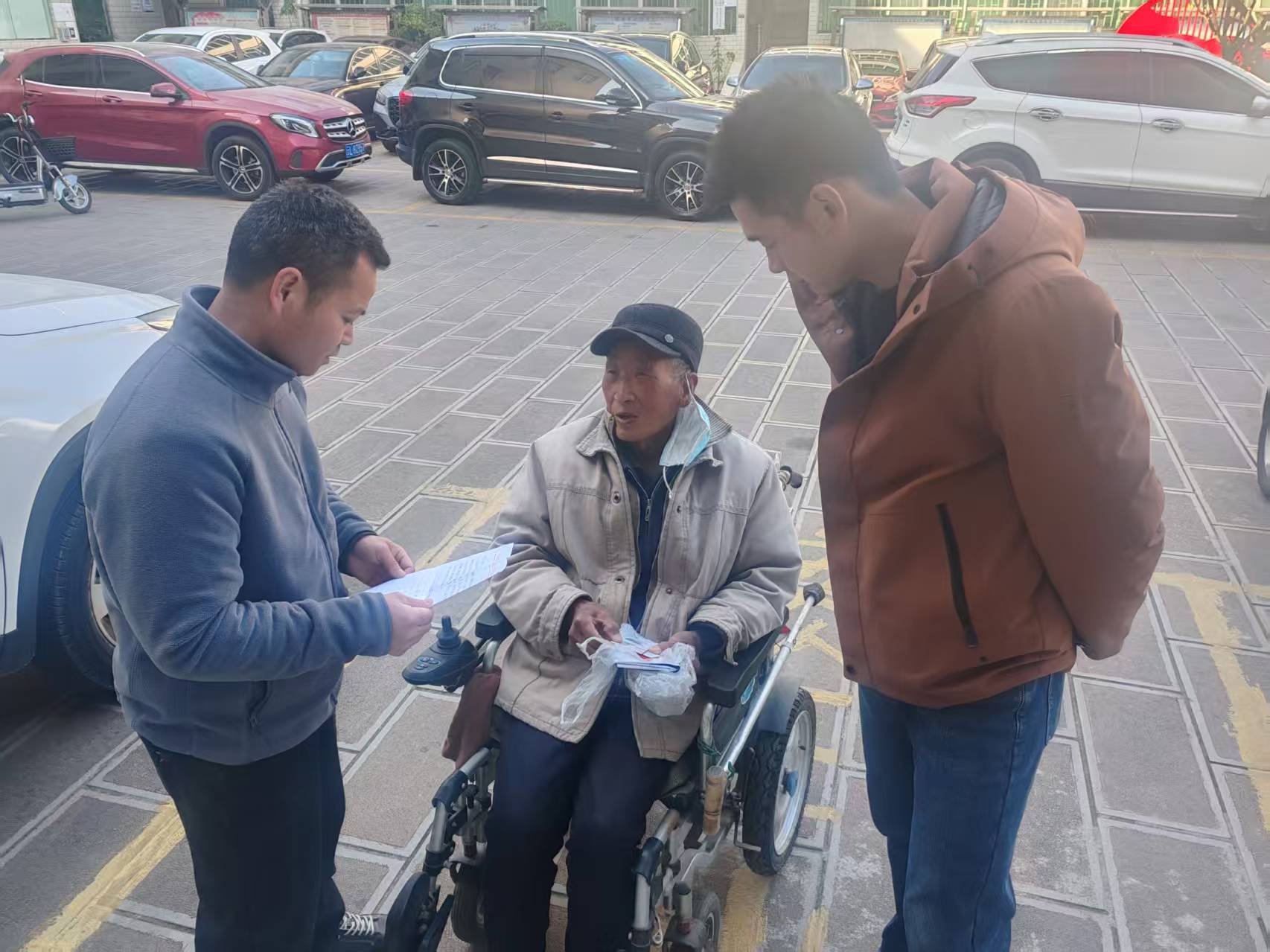 李小军和杨严凑到老人跟前,向这位1958年3月从农村应征入伍,1961年9月退役回家从事农业生产劳动的年近九旬老兵问明情况,并与他亲切交谈,认真看了老兵的申请,耐心答复了老兵的诉求,进行了政策宣传和解读,动心动情地帮他出主意想办法。这名老兵听得心满意足地直点头,并一个劲地道谢。