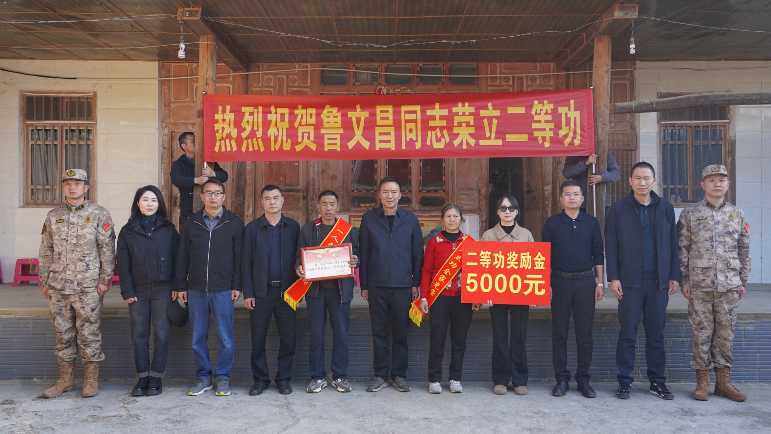 县委副书记、县长张挺率慰问组来到现役军人鲁文昌家中,将二等功喜报送给他们家,向他们表示亲切的慰问和崇高的敬意,将党和政府的关怀与温暖送到军人军属心坎上。