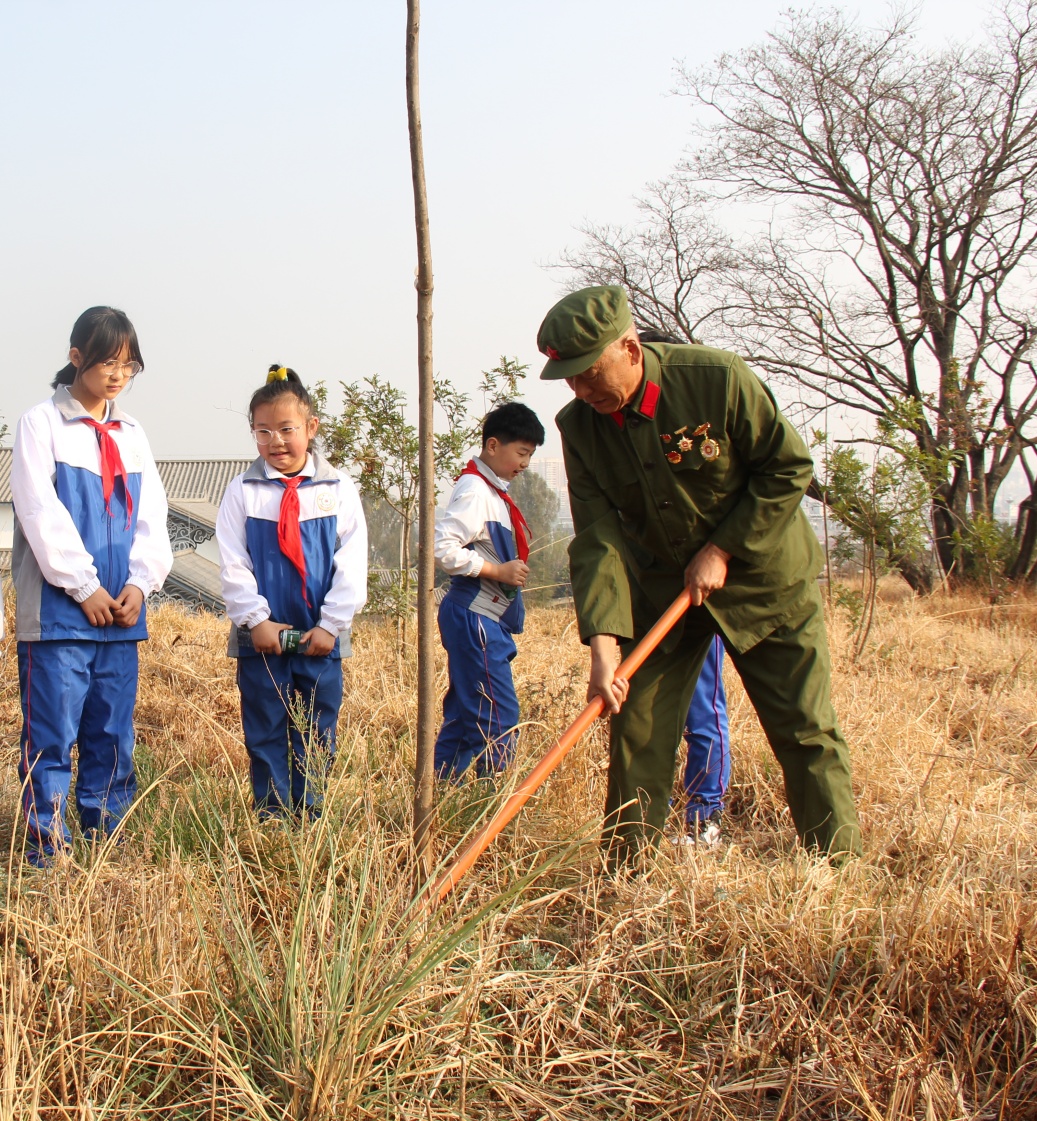 当天,由全国红军小学建设工程理事会命名为“红军小学”的祥云县祥城镇城西社区完全小学的少先队员来到祥云烈士陵园,在这里与县关爱退役军人协会老兵和祥云太安医院红十字会的老志愿者开展“小手拉大手”植树缅怀革命先烈活动。“一老一小”的植树添绿壮举,成为活动中的一道亮丽风景。