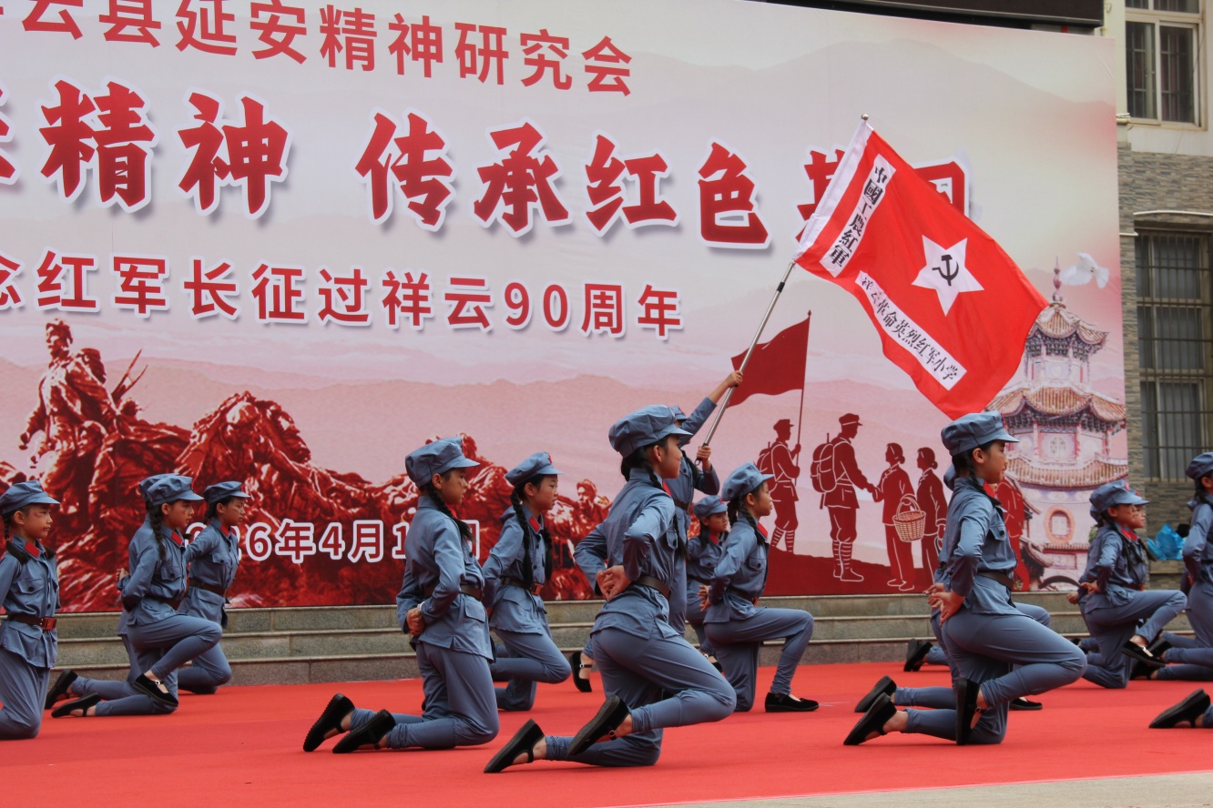 4月20日,在云南省祥云县“弘扬长征精神,传承红色基因——纪念红军长征过祥云90周年”主题实践活动启动仪式上,被全国红军小学建设工程理事会命名为“红军小学”的祥云县祥城镇城西社区完全小学演出红色经典节目,纪念红军长征过祥云90周年。