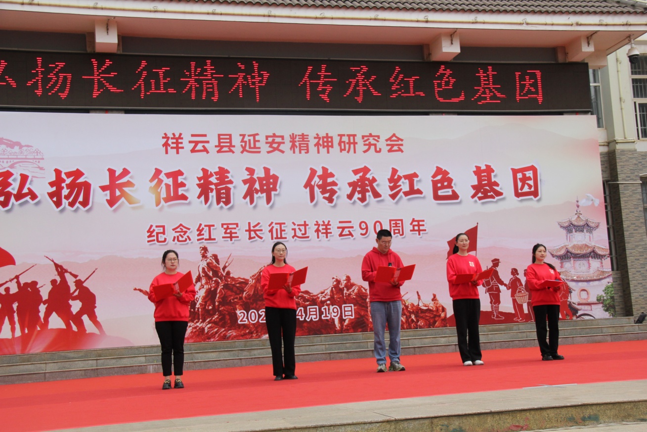 “一面旗帜/ 引领一支队伍/ 一种信念/ 点燃一把火炬。”慷慨激昂的朗诵,纪念红军长征过祥云90周年,讴歌红军长征90周年,“长征是宣言书,长征是播种机,长征是宣传队,长征是镰刀斧头拥抱在一起的智慧,是星星之火走到哪里就燎原在那里”的豪言壮语,久久回响在耳旁。