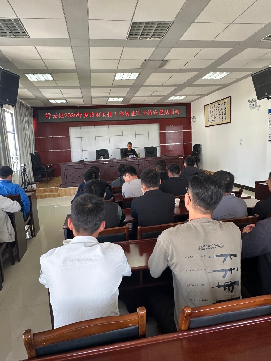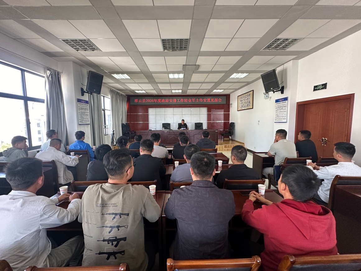 为切实做好2026年政府安排工作退役士兵安置服务工作,帮助政府安排工作退役士兵平稳实现角色转换、快速融入地方发展,祥云县召开政府安排工作转业军士安置见面会。会上,祥云县退役军人事务局相关负责人详细介绍了祥云县转业干部、转业军士安置政策及近年来的安置形势,讲解了安置工作的规范流程,勉励大家尽快转变角色,融入地方环境,继续发扬人民军队光荣传统和优良作风,不断提升能力素质和工作水平,为家乡建设贡献退役军人力量。