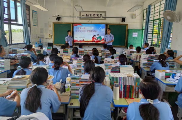 新学期的曙光初现,畹町边检站执勤队、混板分站民警走进瑞丽市第五民族中学,以“法治辅导员”的身份,为师生呈上了一堂极具深度与温度的开学第一课,为校园安全与未成年人成长筑牢法治基石。