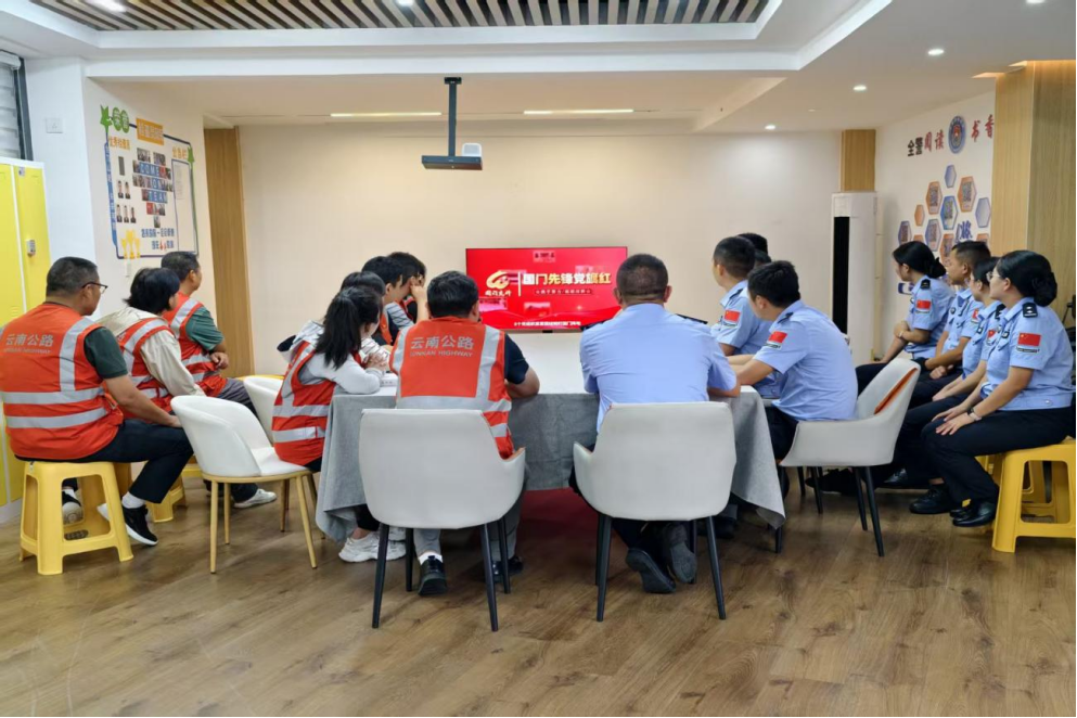 工作交流环节,与会人员共同观看瑞丽公路分局2024年工作总结视频和畹町边检站执勤队“国门先锋党旗红”党建品牌创建介绍视频。视频生动展示了两家单位在各自领域履职尽责、担当作为的实践成果和党建工作特色亮点,为双方相互学习、共同提升提供了宝贵参考。