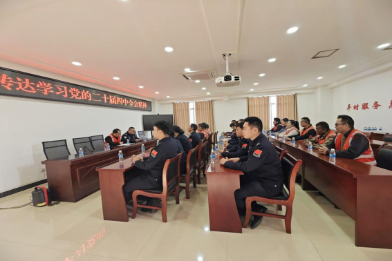 随后,畹町边检站执勤队党支部书记在瑞丽公路分局机械化养护和应急中心办公室领学了党的二十届四中全会精神,3名党员、团员代表结合岗位实际就如何落实好全会精神作了交流发言。