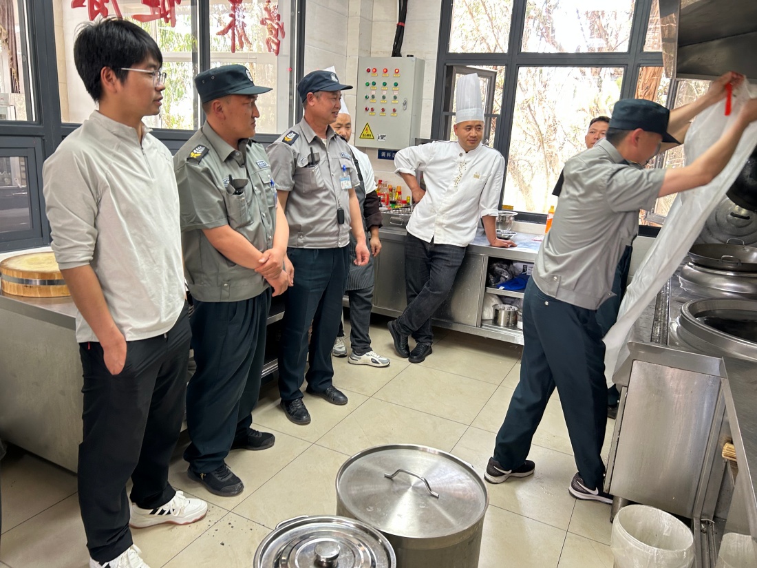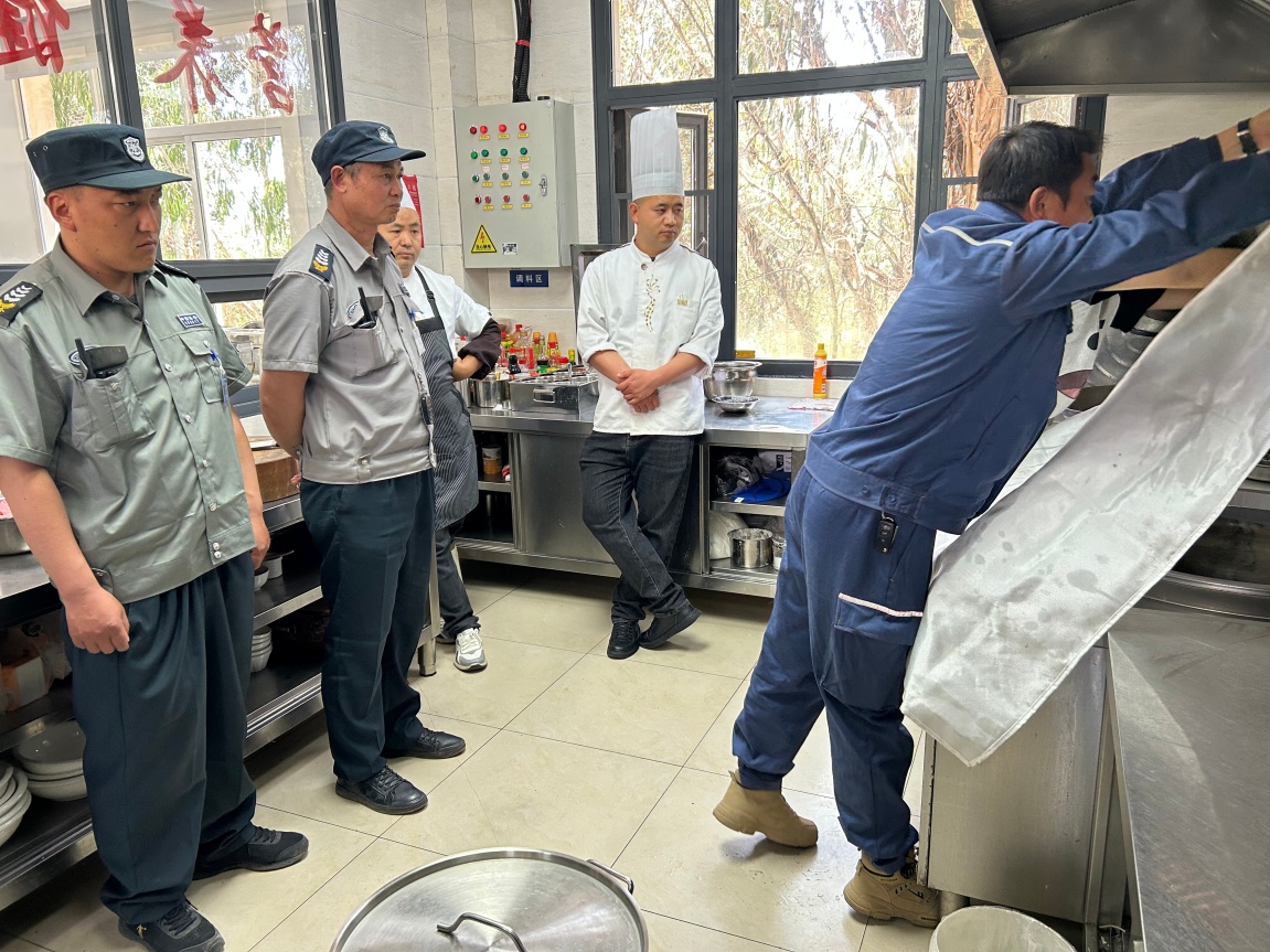 推演结束安全监管部门、综合服务中心等参加推演及观摩领导对本次演练进行分析、评估。点评中注重强调了食堂日常防火要求:规范厨房用火,用电。提示厨房要及时清理油烟管道、严禁堆放易燃杂物,筑牢消防安全防线。