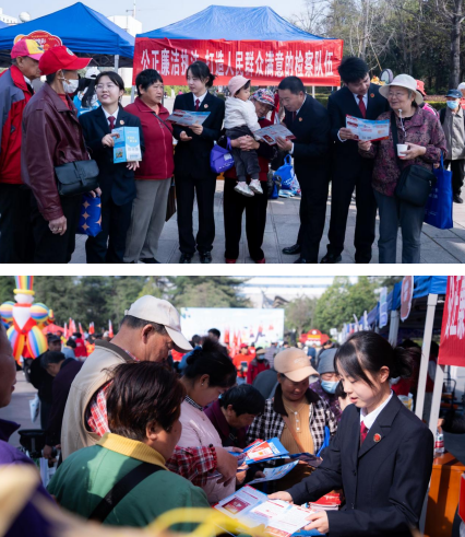 近日,干警们走进碧鸡广场,参加公益市集志愿服务。普法摊位前,干警们通过发放宣传资料、现场讲解,向群众普及禁毒、反诈、扫黑除恶等法律知识。针对高发的电信诈骗,干警结合案例以案释法,提醒群众守好“钱袋子”,接地气的讲解吸引众多市民驻足咨询。