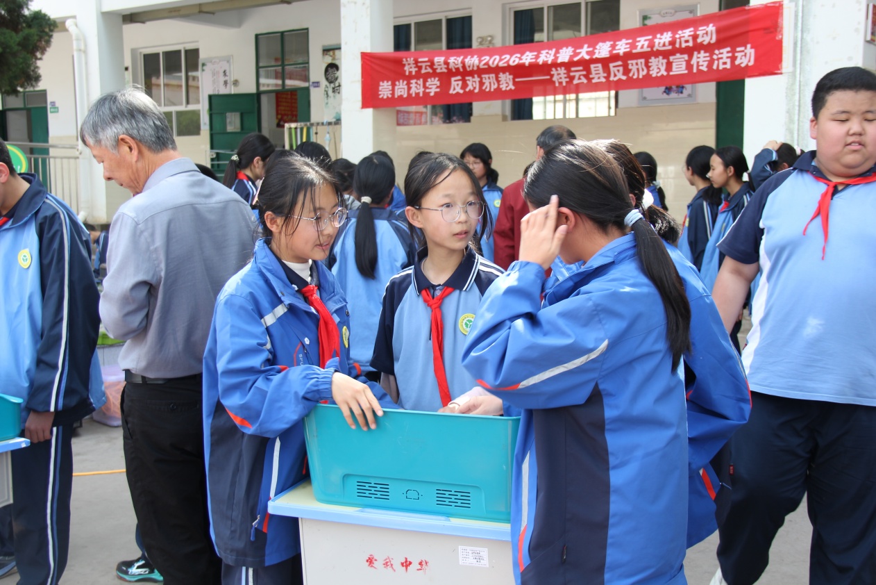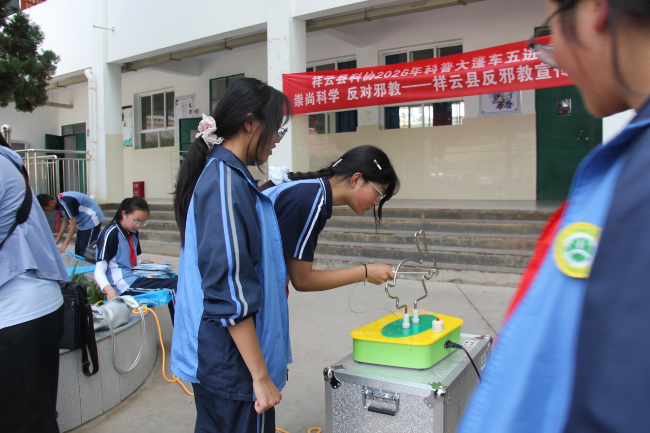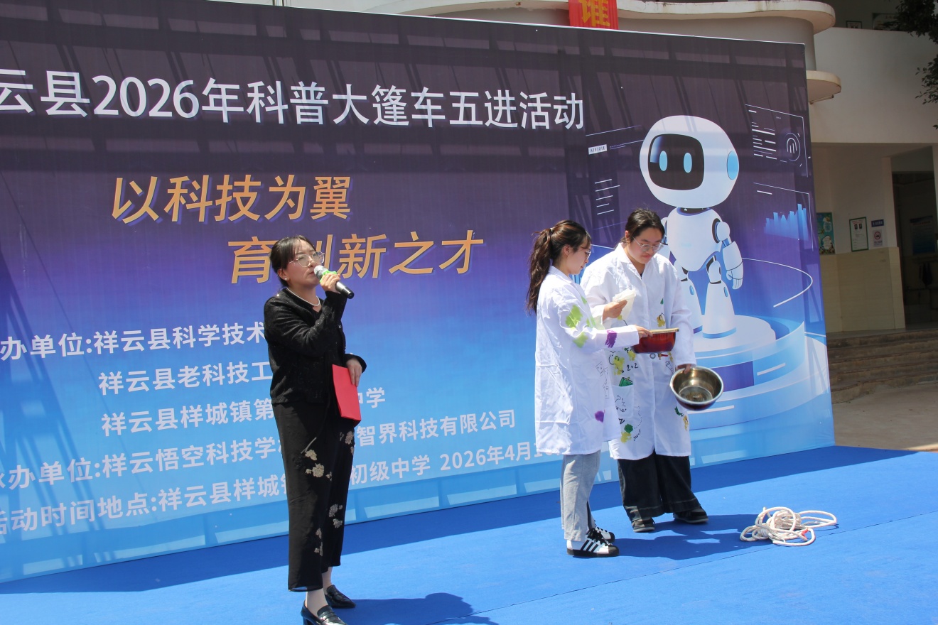 为进一步落实“双减”政策,丰富校园科技文化生活,激发青少年学科学、爱科学、用科学的浓厚兴趣,由祥云县科学技术协会、祥云县老科技工作者协会、祥城镇第一初级中学主办,祥云县悟空科技学校、大理智界科技有限公司承办的祥云县2026科普大篷车五进活动,在祥城镇第一初级中学拉开序幕。