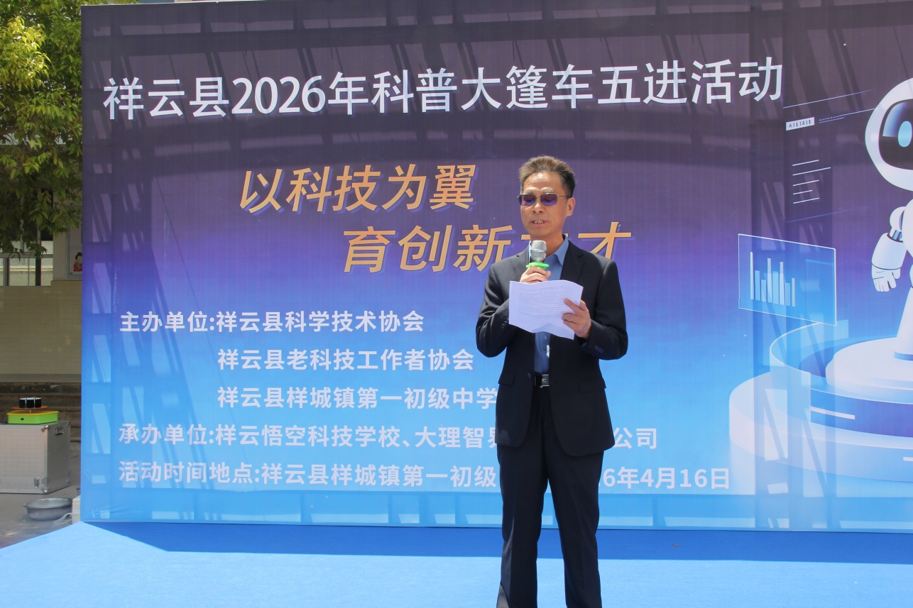 为进一步落实“双减”政策,丰富校园科技文化生活,激发青少年学科学、爱科学、用科学的浓厚兴趣,4月16日,由祥云县科学技术协会、祥云县老科技工作者协会、祥城镇第一初级中学主办,祥云县悟空科技学校、大理智界科技有限公司承办的祥云县2026科普大篷车五进活动,在祥城镇第一初级中学举行,通过持续开展科普大篷车进学校活动,点燃青少年的科学梦想。