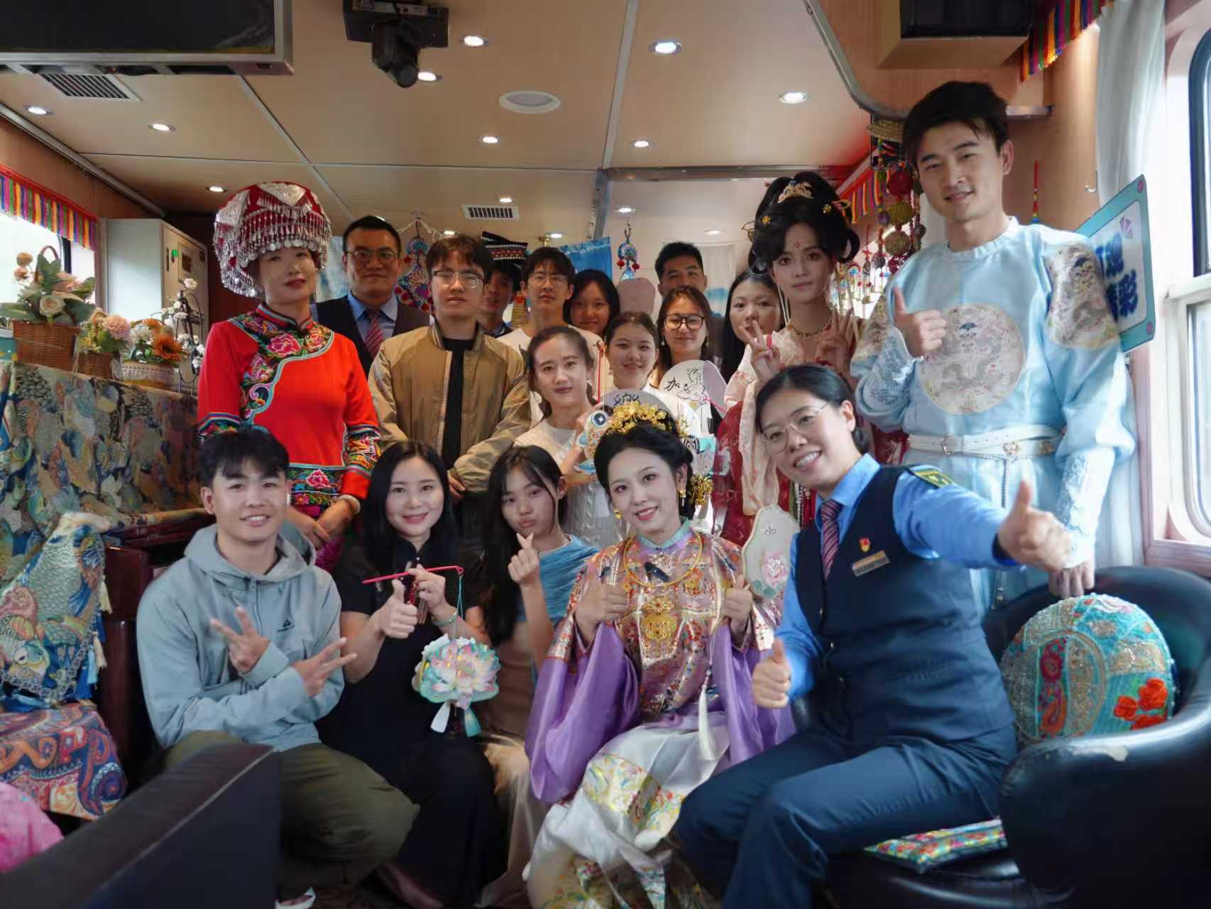 假日期间,在Y759次列车上,国铁昆明局昆明客运段精心设置了中秋主题列车,灯谜、玉兔、月饼等元素随处可见,在餐车内还开展了一场热闹非凡的欢庆中秋活动。