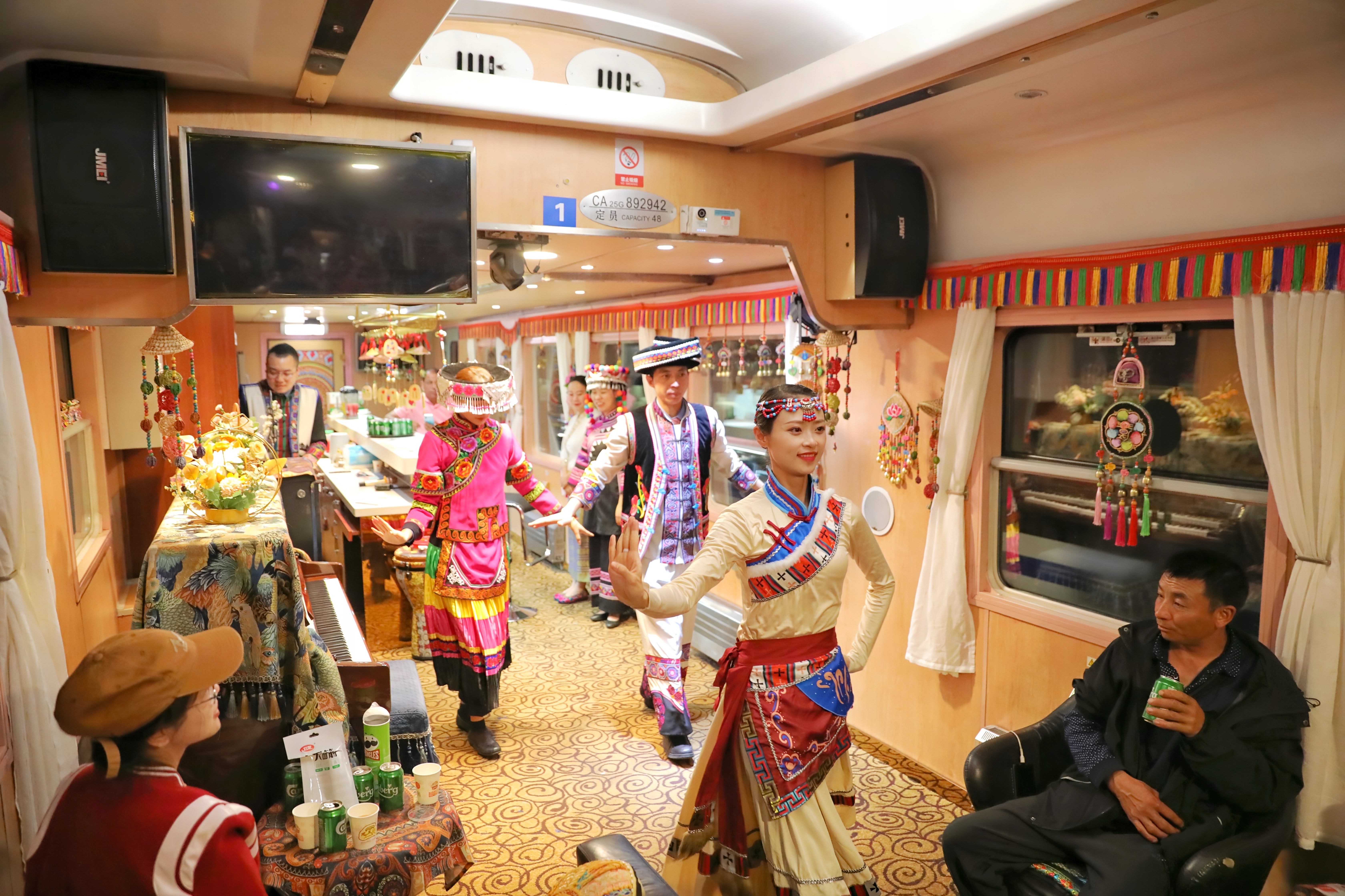 环线旅游列车范围扩大。此次调图,国铁昆明局调整了管内环云南游旅游列车开行方案,维持西环线昆明至保山、保山至丽江、丽江至磨憨、磨憨至昆明的开行方案。将既有雪山至雨林方案整合为东环线的昆明至宣威、宣威至丽江、丽江至西双版纳,西双版纳至丽江、丽江至昆明的开行方案。调整后,满足了东西双环云南的条件,串联起宣威、丽江、西双版纳等城市,可游览的景点更多。届时,乘客可以乘坐环线旅游列车到宣威品尝“宣威火腿”“宣威黄豆腐”等美食,到丽江古城感受古老的东巴文化,再到西双版纳感受傣族风情。