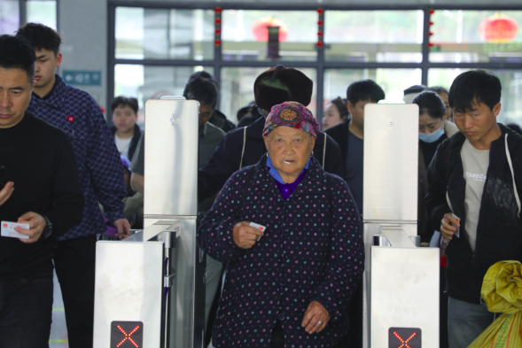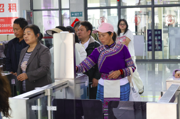 国铁昆明局集团紧扣各族旅客春节出行需求,在昆(明)玉(溪)河(口)铁路实行假日高峰运行图,日均开行列车11列,较日常增开3列,有效满足了旅客出行需求。国铁昆明局还在屏边站精准推出适老帮扶、苗语导乘、节庆指引三项特色服务,依托安全顺畅的铁路运输通道,叠加细致入微的人文关怀,全力保障各族群众与游客平安顺畅出行、欢度新春佳节。