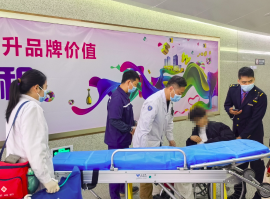 玉溪站闻令而动,一场争分夺秒的生命救援迅速展开。9时05分,车站综控员普洁接列车调度紧急通报后,即刻拨打120,同步联动客运值班员朱柏吉,朱柏吉快速推轮椅跑向三站台5号车厢,同时紧急通知同事支援。