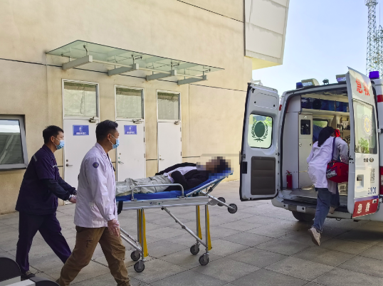 9时10分,列车准点抵站。朱柏吉与列车长快速完成交接,精准掌握旅客病情。此时,患者腹痛如绞,双手紧捂小腹,冷汗浸满额头。朱柏吉与同事迅速将旅客扶上轮椅,平稳推送至站台外,无缝对接赶来的120救护车。众人合力将旅客转移至担架,医护人员当即按压患者后腰实施急救,疼痛得到有效缓解。