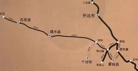 5.初期由具有国际影响的滇越铁路和具有民族精神的个碧临屏铁路两线构成,以昆明、宜良、盘溪、开远、碧色寨、人字桥、河口、鸡街、建水、石屏等为重点区域,逐步实现可扩展和可延伸。远期可通过越南直接与东南亚相连,发挥国际通道作用和国际文化交流合作,服务南方丝绸之路和海上丝绸之路。