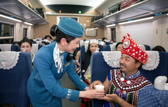 服务品质持续优化,旅客体验更加美好。中老两国铁路部门持续优化站车服务,推出系列惠民服务举措。打造“舌尖上的列车美食”,列车上专门供应各种傣味小排、酸笋牛肉、菠萝饭等地方特色餐食,创新推出融合中老咖啡和茶文化的“一路咖香”特色饮品,满足不同地域和不同饮食习惯旅客对茶、咖、果饮的个性化选择。沿途车站和列车配备多语言翻译设备,提供中、老、英三语广播和引导服务,并增设血压计等便民设施。在支付便利化方面,国内段沿线车站设置国际旅客购票专门窗口,14个客运站开通境外银行卡支付功能,支持多种外籍证件购票,磨憨站布设ATM机,全力保障老年人、外籍来华人员等群体购票支付顺畅。老挝境内推广互联网手机APP售票系统,拓展电子支付渠道,在万象、琅勃拉邦增设市内售票点,全面提升购票体验。