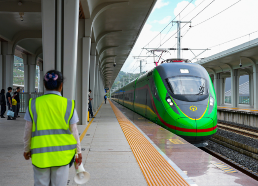 精心组织跨境运输,旅客发送量持续增长。中老铁路国际旅客列车自2023年4月13日开通以来,凭借安全、高效、便捷的运输服务,迅速成为旅客跨境出行的首选。为适应旅客跨境出行需求,铁路部门精准施策,动态优化列车开行方案,2024年4月13日起逢周末开行西双版纳至琅勃拉邦国际旅客列车,2025年两次扩大其开行范围,将运行区间延伸至昆明至万象,成为第二对昆明至万象国际旅客列车。目前,昆明与万象间每日国际旅客列车4列,每趟列车的跨境旅客席位从开通初期的250个增至420个。昆明南至万象间列车运行时间压缩至9小时36分,磨憨铁路口岸通关时间压缩至50分钟左右,为旅客跨境旅游、求学、经商提供了极大便利。今年一季度,国际旅客列车发送跨境旅客11.2万人次,同比增长32.4%,日均跨境旅客发送量较2023年增长三倍。