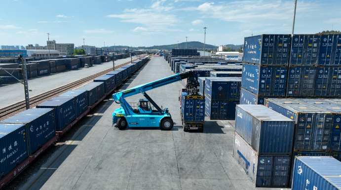 目前,中老铁路运输版图不断扩展,已覆盖老挝、缅甸、柬埔寨、泰国、越南、马来西亚、新加坡、孟加拉国等19个国家和地区。跨境商品种类从开通初期化肥、橡胶等10余种扩展至目前的化工、鲜活、纺织、电气、矿石、农副等3800余种,为区域繁荣发展注入了新活力。文字:何思远 殷学合